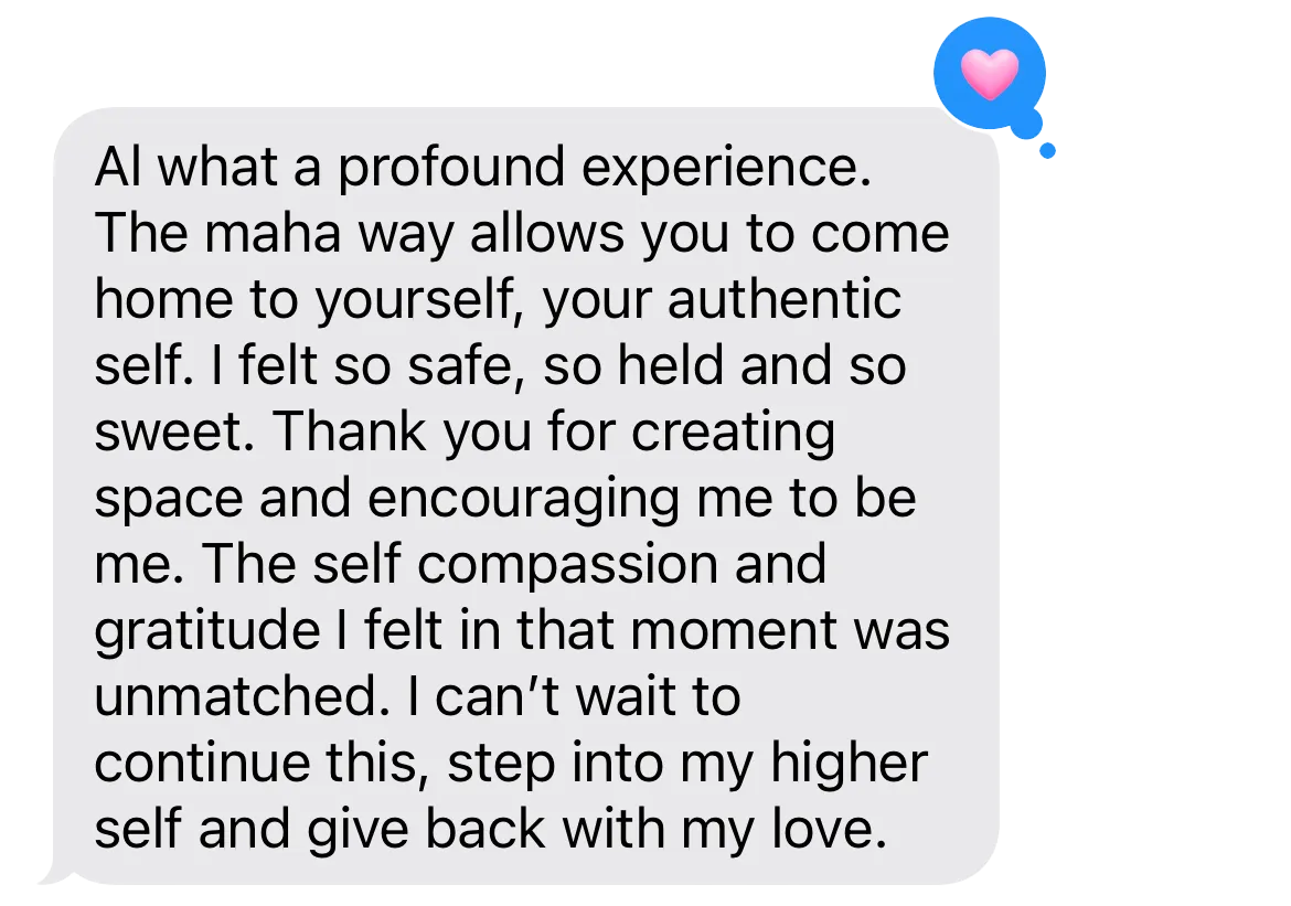 Most group coaching stays at the level of mindset and conversation. This works at the level of your nervous system — which is why it lands differently. The MAHA Method speaks to all six layers of your being at once. You're not just learning about your patterns. You are physically changing them, in your body, in real time.